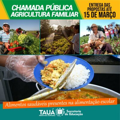 Com o objetivo de estimular a produção dos pequenos agricultores e fornecer merenda escolar de qualidade para os alunos, a Prefeitura de Tauá, através da Secretaria da Educação, realizará a compra de gêneros alimentícios da Agricultura Familiar e do Empreendedor Familiar Rural. Para isso, está realizando a Chamada Pública nº 18.02.001/2021-SME, que tem como objeto a aquisição de gêneros alimentícios da Agricultura Familiar e do Empreendedor Familiar Rural, destinado ao atendimento do Programa Nacional de Alimentação Escolar/PNAE.